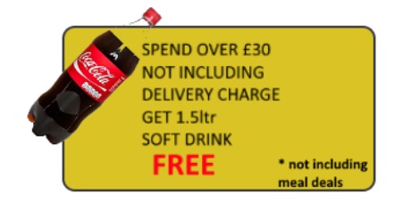 If you spend over £30 excluding delivery we will give you a FREE 1.5 Ltr soft drink.